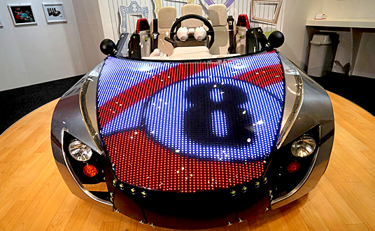 ブース内の「Design Lab(デザイン ラボ)」コーナーでは、コンセプトカー「Camatte57sスポーツ」のフード表面にLEDを付け、来場者が自分で描いた絵を出すことにより、クルマを簡単にカスタマイズできる展示を行いました。